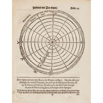 Note: Providing a grounding in navigation and a practical guide to the uses of maritime instruments, books such as van den Brouck's work were essential for sea-farers in the early 17th century, when the Dutch East India Company was branching into Southern Africa and Asia. It is notable that this particular volume was collected and saved by a Dutch maritime family. A rare work, the Karlsruhe Virtuelle Katalog reveals only four copies of this edition recorded in academic and national libraries worldwide.