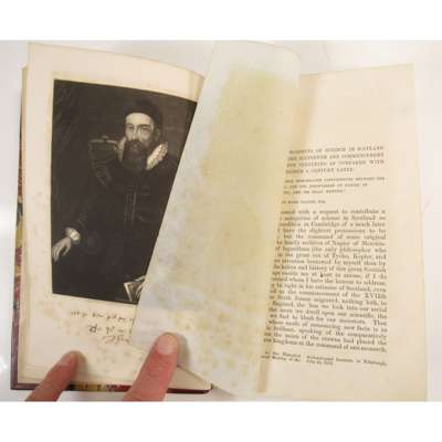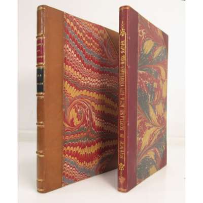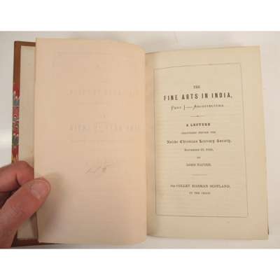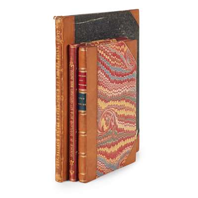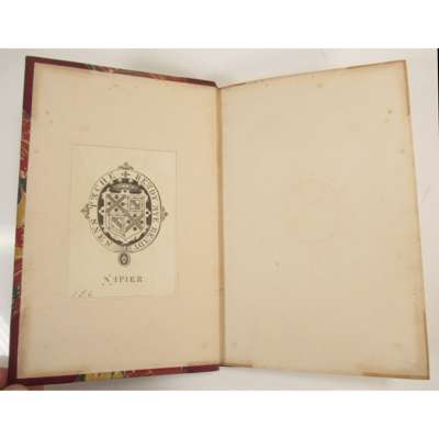 The Fine Arts in India. [Madras : Foster Press] [1869], Parts 1 and 2, original wrappers bound in; Madras University. Convocation, April 2, 1869. Address by the Right Hon. Francis, Baron Napier, K.T., Chancellor; Opening Address delivered at the Sixteenth Annual Congress of the National Association for the Promotion of Social Science. London, 1872; Missions; their temporal utility... 1873; Dwellings of the Poor. Report of the Dwellings Committee of the Charity Organisation Society. 1873, wrappers bound in; Address on Education. 1875, 6 works in one volume, contemporary half calf, spine gilt; Napier, Mark On the Progress and Prospects of Science in Scotland at the Close of the Sixteenth and Commencement of the Seventeenth Centuries. [1856], 8vo, drop-head title, presentation copy to Lord Napier, Lord Napier's bookplate, contemporary half morocco, t.e.g.; Wallace, William On the Burial Place of John Napier of Merchiston, the Inventor of Logarithms. 1831 [read to the Society of Antiquaries of Scotland], 4to, 4pp., presentation copy to the Right Hon. Lord Napier, contemporary half calf, bookplate of Lord Napier (3)