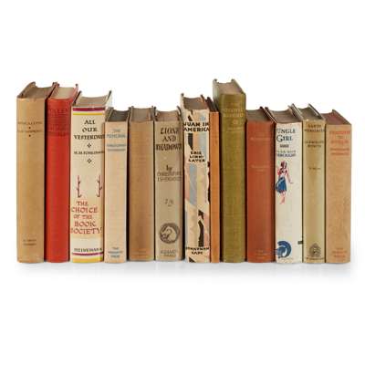 The Colonel's Daughter. 1931, number 134 of 210 copies signed by the author, original green buckram, t.e.g.; Aldington, R. A Dream in the Luxembourg. 1930, number 92 of 308 copies signed by the author, original buckram-backed boards, t.e.g.; Isherwood, Christopher Lions and Shadows. Hogarth Press, 1938, dustwrapper, newspaper articles pasted to preliminary leaves or endpapers or loosely inserted, with resulting discolouration, dustwrapper; Isherwood, C. Goodbye to Berlin. Hogarth Press, 1939, 2nd impression, original cloth; Isherwood, C. The Memorial. 1932, review copy with Date of Publication slip loosely inserted, original cloth; Linklater, Eric Juan In America. 1931, dustwrapper slightly rubbed; Burroughs, E.R. Jungle Girl. 1933, first British edition, dustwrapper slightly rubbed; Powys, Llewelyn Earth Memories. 1934, dustwrapper; Sackville-West, V. The Edwardians. Hogarth Press, 1930, first British edition, original orange cloth, spine faded; Sackville-West, V. All Passion Spent. Hogarth Press, 1931, owner's name stamp on endpaper; Tomlinson, H.M. All our Yesterdays. 1930, dustwrapper; Lawrence, D.H. Apocalypse. Florence: G. Orioli, 1931, number 11 of 750 copies, dustwrapper price clipped; Egan, Beresford Pollen. 1933, original orange cloth; (13)