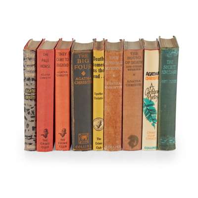 The Secret Adversary. London: John Lane, 1922, first edition, original blue cloth, slight wear at extremities; The Big Four. W. Collins Sons, 1927, first edition, spotting, original blue cloth, slightly rubbed; The Hound of Death and Other Stories. Oldhams Press, 1933, first edition, original maroon cloth; The Listerdale Mystery. Collins, 1934, first edition, original maroon cloth, rubbed, spine faded; Death comes as the end. The Crime Club, 1945, dustwrapper; They Came to Baghdad. The Crime Club, 1951, original red cloth; They do it with mirrors. The Crime Club, 1952, dustwrapper slightly soiled; The Pale Horse. The Crime Club, 1961, original red cloth; A Caribbean Mystery. The Crime Club, 1964, dustwrapper slightly soiled (9)