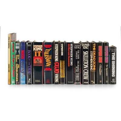 The Shining. London: New English Library, 1977. First UK edition with gutter mark R49 on p.447, 8vo, original black cloth gilt, dust-jacket not price-clipped; It. London: Hodder & Stoughton, 1986. First UK edition, 8vo, original black cloth gilt, dust-jacket not price-clipped; Christine. London: Hodder and Stoughton, 1983. First UK edition, 8vo, signed by Stephen King to the front-free endpaper; Firestarter. London: Macdonald Futura Publishers, 1980; Cujo. New York: Viking Press, 1981; The Talisman. New York: Viking, 1984; Pet Sematary. London: Hodder and Stoughton, 1983; Misery. London: Hodder & Stoughton, 1987; The Dead Zone. London: Raven/Macdonald and Jane's, 1979; Skeleton Crew. New York: G.P. Putnam's Sons, 1985; Different Seasons. London: Macdonald & Co, 1982; The Dark Tower: Gunslinger. Rhode Island: Donald M. Grant, 1984; The Dark Tower II: The Drawing of the Three. Rhode Island: Donald M. Grant, 1987; The Eyes of the Dragon. New York: Viking, 1987; Cycle of the Werewolf. Michigan: Christopher Zavisa, 1983. 4to; and another, including a short story by King; all 8vo with non-price clipped dust-jackets unless stated (16)