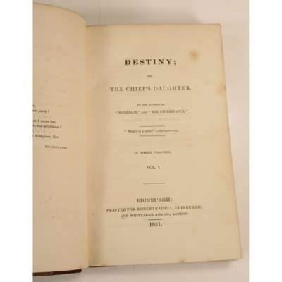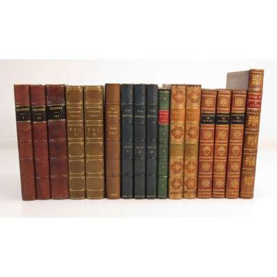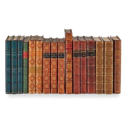 Dunbar, William The Poems ...with Notes and a Memoir of His Life by David Laing. Edinburgh: Laing and Forbes, 1834. 2 volumes, 8vo, contemporary green morocco gilt, bookplates, spines slightly faded; [Galt, John] The Steam-Boat. Edinburgh: William Blackwood, 1822. 8vo, contemporary brown half morocco gilt; [Idem] The Entail... Edinburgh: William Blackwood, 1823. 3 volumes, 8vo, contemporary blue half morocco gilt; [Ferrier, Susan E.] Destiny; or, the Chief's Daughter. Edinburgh: Robert Cadell, 1831. 3 volumes, 8vo, bookplate of A.P. Wavell, contemporary half calf; Wassermann, Jakob Geronimo de Aguilar. Munich: Avalun-Druck, 1923. 8vo, one of 450 copies, signed, contemporary green quarter morocco gilt, slipcase; Borrow, George Romany Rye, 1857. 2 volumes, 8vo, contemporary half calf gilt; Scott, Sir Walter The Fortunes of Nigel. Edinburgh: Archibald Constable and Co., 1822. 3 volumes, 8vo, contemporary calf gilt; [Idem] The Doom of Devorgoil, a Melo-Drama. Edinburgh: Cadell and Company, 1830. 8vo, contemporary speckled calf gilt sensitively rebacked (16)