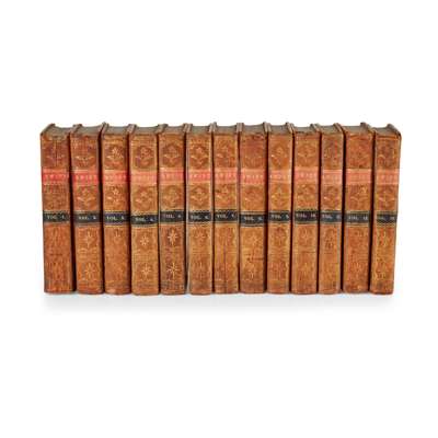 Edinburgh: A. Donaldson, 1768. 13 volumes, 8vo, contemporary calf gilt, bookplates of Edmund Fleming Akers, some chipping and rubbing to spines (13)