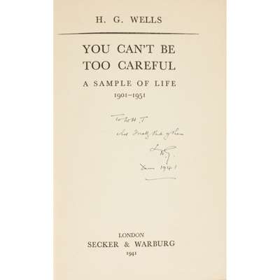 London: Secker & Warburg, 1941. First edition, 8vo, signed and inscribed by Wells on title-page, dated Christmas 1941, original green cloth, spine slightly faded