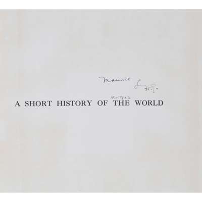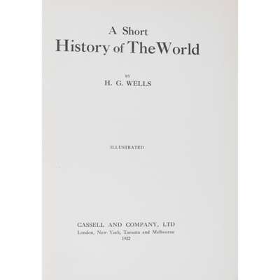 London: Cassell and Company, 1922. First edition, 8vo, inscribed by H.G. Wells on the half-title: "Maurice, from H.G. Nov. 1922", with the bookplate of Maurice Baring, original blue cloth gilt, spine a little faded with some pulling to cloth