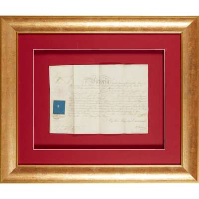 printed and manuscript on vellum, 23 x 33cm, framed and glazed, appointing to the position of Lieutenant John Aeneas Duncan in the 29th Regiment on foot, dated 14th November 1842, signed Victoria in the upper left corner