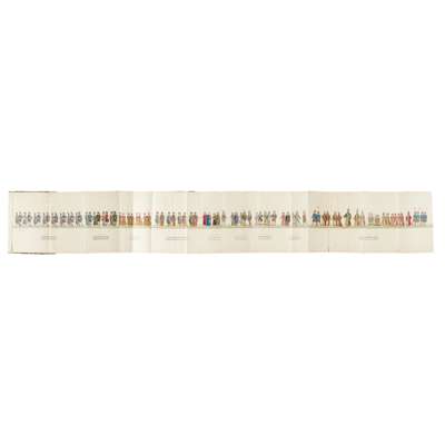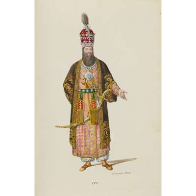 Naples: Stamperia Reale, 1827. Folio, 12 hand coloured plates including the long processional plate featuring 84 hand-coloured figures (as called for in the contents), contemporary green quarter morocco gilt, covers a little rubbed, inscription to front free-endpaper: "See portrait of Lady Julia Lockwood No. 48 in the Quadriglia di Petraca" and lightly in pencil: "Sent to me by order of the King of Naples", a little light foxing to text, with some very slight dust-soiling and marginal browning to plates