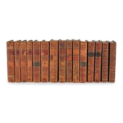 The Works. 1788. 7 volumes , 4to, engraved portrait, contemporary calf, rubbed, 2 covers detached; Sadler, Sir Ralph The State Papers and Letters of Sir Ralph Sadler, edited by Arthur Clifford... Memoir by Walter Scott. Edinburgh, 1809, 2 volumes, 4to, engraved portraits, contemporary half calf, some spotting, rubbed; Alberti Nouveau Dictionnaire Français-Italien. Geneva, 1811, 2 volumes, 4to, contemporary half calf, spines gilt; Watt, Robert Bibliotheca Britannica. Edinburgh, 1824. 4 volumes, 4to, contemporary calf gilt, slightly rubbed, several joints splitting (15)