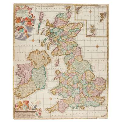 Amsterdam, late 17th century, 59 x 50cm, hand coloured, trimmed down to engraved area, some marginal chips and repairs slightly affecting engraved area
