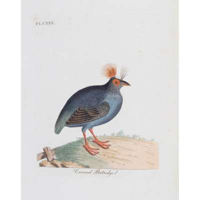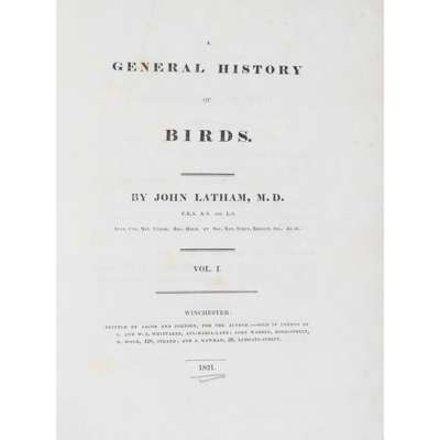 Winchester: G. & W.B. Whittaker, 1821-1828. 10 volumes, 4to, 193 hand-coloured plates, with an additional 2 hand-drawn plates (blue wagtail and yellowhammer?), contemporary half Japanese vellum, some foxing to plates and text (10)