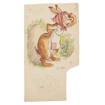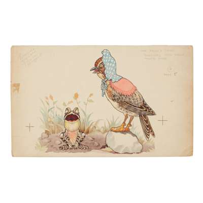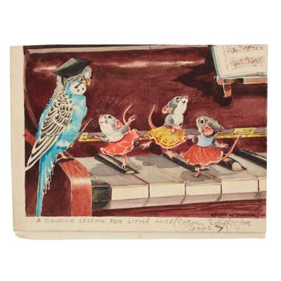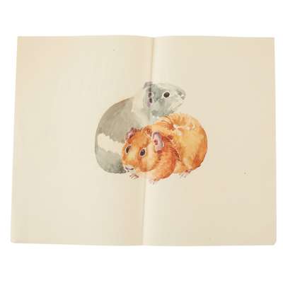 Haywood, Helen, illustrator, (1907-1995) 66 drawings, from 7 x 7cm to 28 x 35cm, the largest ones folded at centre, 13 watercolours (5 on card), from 8 x 7cm to 17 x 27cm, all of guinea pigs, foxes, rabbits, chicks, mice, monkeys, birds, foxes &c.; Peter Connolly, illustrator, (1935-2012) 18 watercolour and gouache paintings of Old Testament scenes, on card, from 13 x 23cm to 55 x 34cm (2)