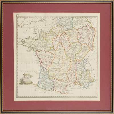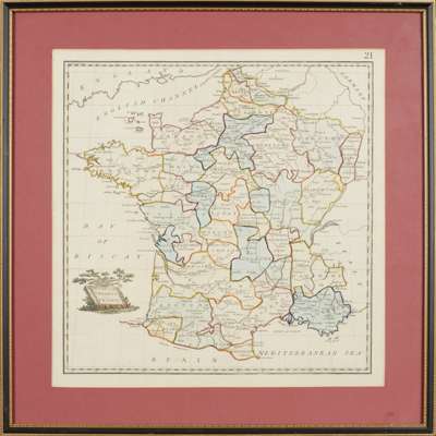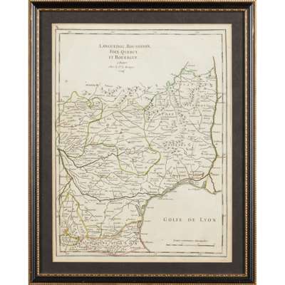Galliae Supra omnes... [Amsterdam, after 1631], 38 x 51cm, hand coloured, framed and glazed, some tears and repairs, some browning; Gallia Antiqua, 39 x 39cm, hand coloured in outline, framed and glazed; and another copy; le Rouge Languedoc, Roussillon, Foix, Quercy et Rourergue. Paris, 1748, 21 x 29cm, framed and glazed; Wyld France in Provinces, [London, c.1819], 23 x 30cm (5)
