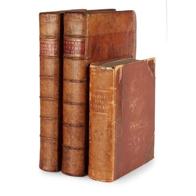 The History of the Sufferings of the Church of Scotland, from the Restauration to the Revolution. Edinburgh: J. Watson, 1722. 2 volumes, large folio, titles printed in red and black with engraved vignette, contemporary panelled calf, morocco labels, bookplates of James Colquhoun of Luss; [Reeves, William, Bishop] Vita Sancti Columbae. Dublin. Bannatyne Club, 1857. 4to, plates, some coloured, half morocco, worn (3)