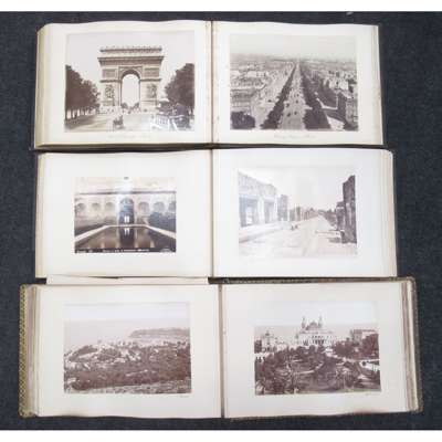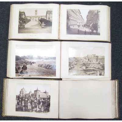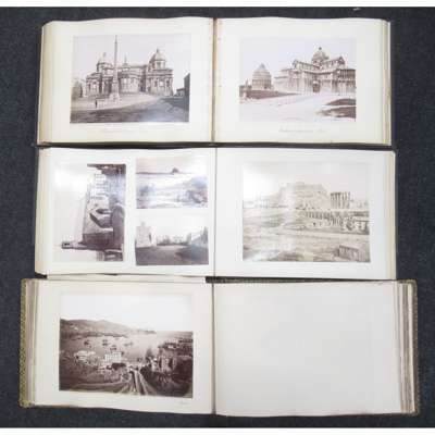 Germany, including Ober-Ammergau play, Venice, Florence, Naples, Pompei, Rome, many with Italian captions in the negative, Genoa, Monaco, Marseille, Paris, Turin, Milan, Pisa, Lyons, Scotland, Malta, Constantinople, Athens, oblong folio, green morocco or half morocco bindings, rubbed (3)