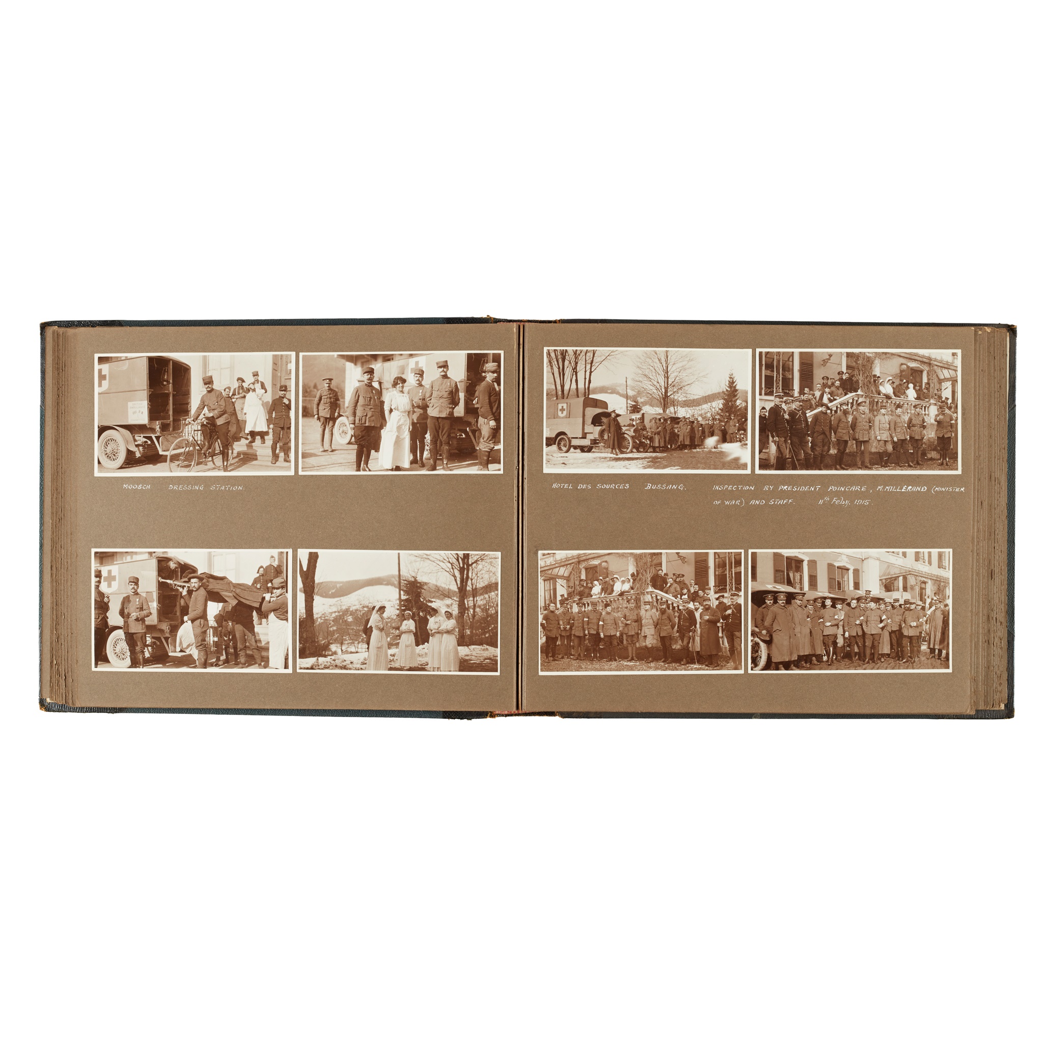 Pounder's End Shell Works, Middlesex, Souvenir of His Majesty The King's Visit, March 1st 1917, oblong 4to, 10 photographs, red crushed morocco gilt; [France, WWI] 36 laid-in photographs and several loose images showing signs of shelling in France, aircraft and weaponry; another album with 72 photographs, many showing service and medical personnel; and a collection of loose photographs including several of aircraft