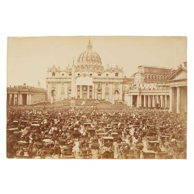 Travel Album large album containing over 100 photographs covering The Netherlands, Edinburgh, The Giant's Causeway, St Andrews, Nuremberg and other locations, along with set photographic portraits and farm animals, images sized between 13.5 x 9.5cm and 34 x 41cm; European Travel Album "Our Various Wanderings, containing 181 photographs covering Switzerland, Italy, Germany, Austria, Hungary and the Czech Republic, images sized between 39 x 13cm and 6.9cm; Stereoscope Cards 41 loose cards relating to travel and Ellison, D.J. Rome through the Stereoscope. New York: Underwood & Underwood, [1902]. 8vo, original green cloth gilt, maps and 46 (of 48) stereoscope cards; album containing 64 albumen prints of Switzerland and Italy; and 4 other albums (9)