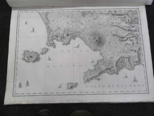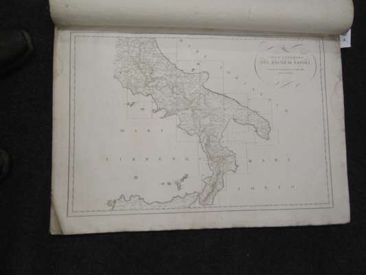 Atlante geografico del Regno di Napoli. [Naples],1808. Very Large folio (84 x 58cm), 32 full-page or folding maps (31 numbered and 'Carta generale') engraved by Giuseppe Guerra, original roan-backed boards, uncut, a few small dampstains to margins, spine very worn, joints split, Cranstoun of Corehouse bookplate