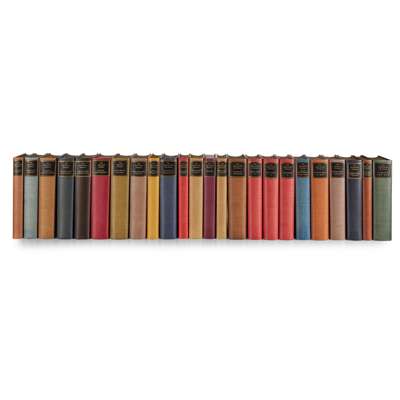 London: The Nonesuch Press, 1937-38, 25 volumes, 8vo, one of 877 copies, including original steel plate entitled "Nicholas attracted by the mention of his sister's name in the Coffee-room", engraved by H.K. Browne ("Phiz") for Messrs. Chapman & Hall Ltd, original vari-coloured cloth, spines with black morocco letter-pieces gilt, t.e.g., steel plate in uniform cloth box with signed letter of authenticity; Meynall, Francis A Note on the Format. London, 1937, 8vo, original red paper covers, sunned (25)
