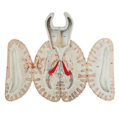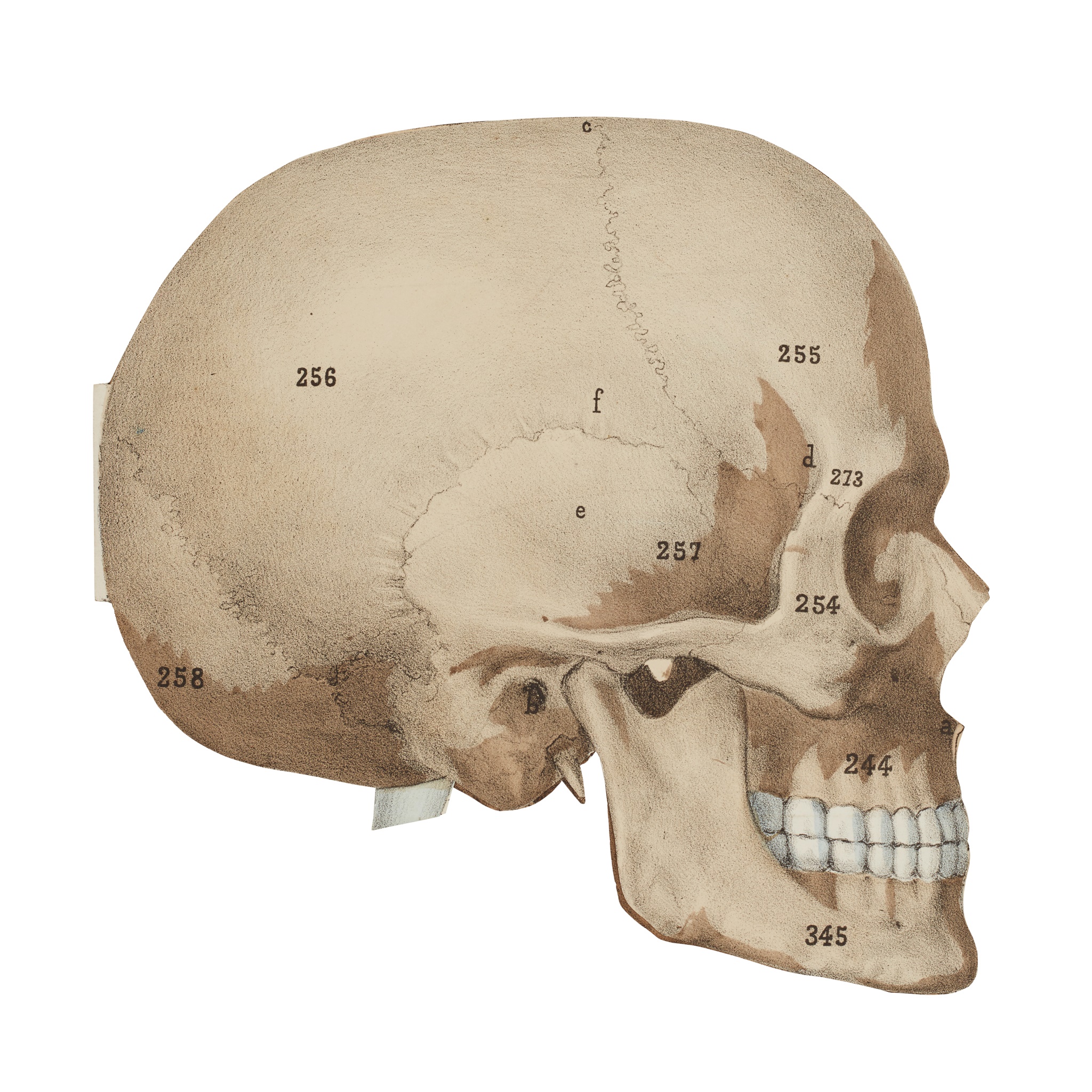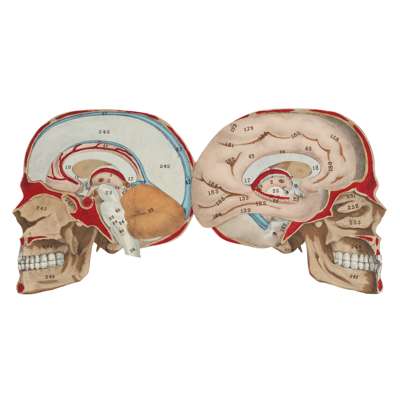 London: Baillière, Tindall, & Cox, [n.d.] 5 parts, folio, comprising: The Tongue and Throat (second edition); Neck and Trunk; The Eye; The Mechanism of Hearing; The Skull [and brain]; The Skeleton and its Articulations; all in original paper-covered boards with coloured movable anatomical parts and text booklets; Cathcart, Charles W. & F.M. Caird Johnston's Students' Atlas of Bones and Ligaments. Edinburgh: W. & A.K. Johnston, 1885. Folio, original green cloth gilt, a little faded, a student's anatomical drawings to initial leaves, ownership signature (6)