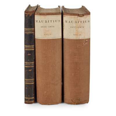 Edinburgh: Printed by R. & R. Clark, 1894, "Private and Confidential. To be regarded as though in Manuscript", 2 volumes, 8vo, original grey cloth, paper labels, small tear to vol. 2 spine. RARE: Only 4 copies recorded in UK libraries.; Rae, William Charles Mauritius. A Handbook on the Constitution, Practice and Proceedings of the Council of Government of Mauritius. Mauritius, Port Louis, 1896. 8vo, maroon half morocco, rubbed (3)