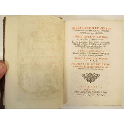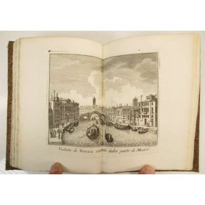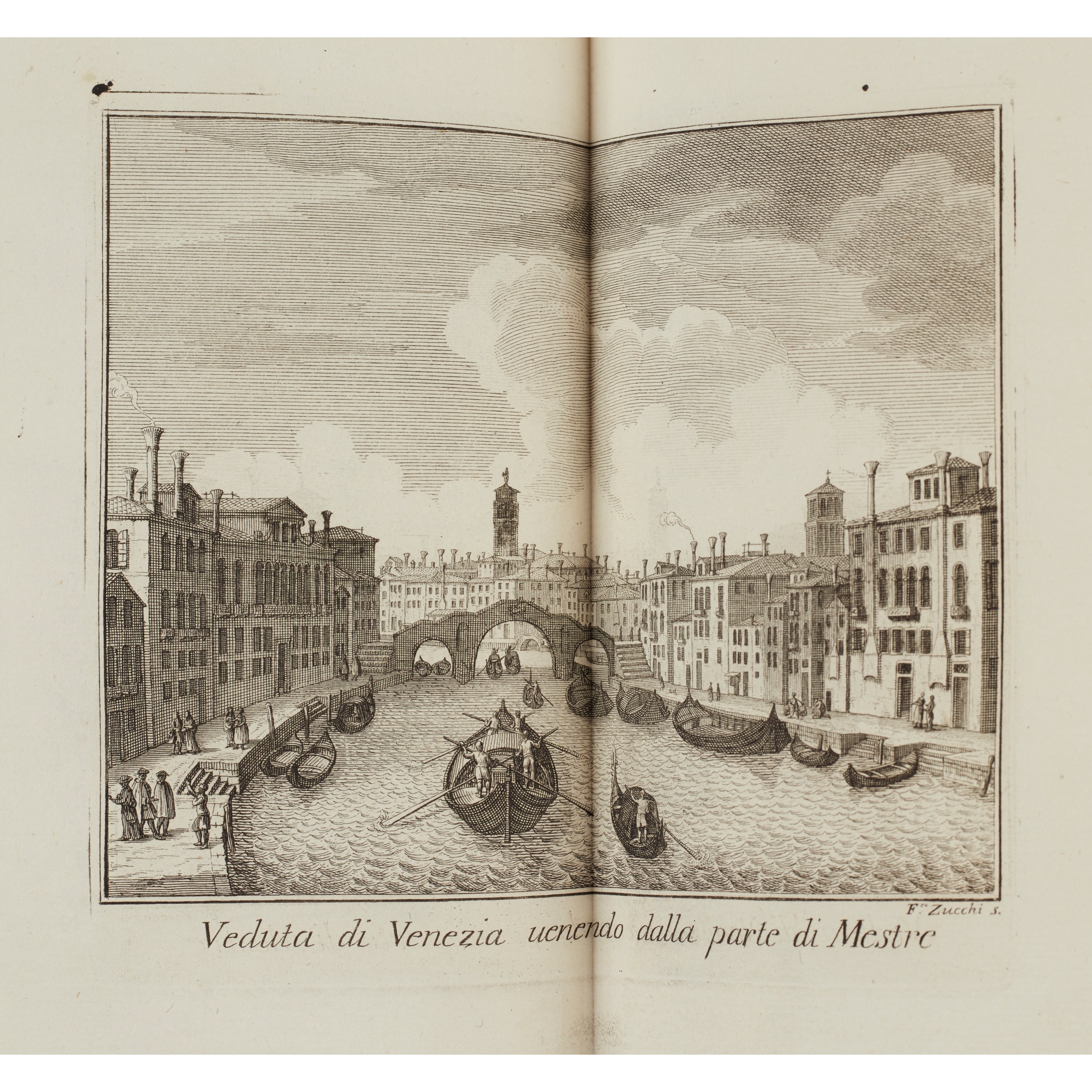 intorno le cose piu rare, e curiose, antiche, e moderne della Citta de Venezia. Venice: G. Albrizzi, 1740. 8vo, engraved frontispiece and 44 plates, some double-page, title printed in red and black, contemporary speckled wrappers