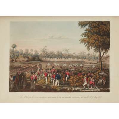 London: Thomas Clay, [1825]. First series only, Folio, title page/upper wrapper on grey-green paper, map mounted on guard, engraved subscribers' leaf (foxed), engraved dedication (a little foxing), 18 hand-coloured lithographs in fine condition, contemporary green half morocco, some creasing to tissue guards and descriptions; [AND] a cloth bound folio volume containing a list of subscribers to the work in India (2)