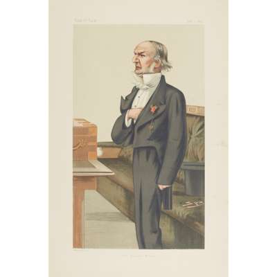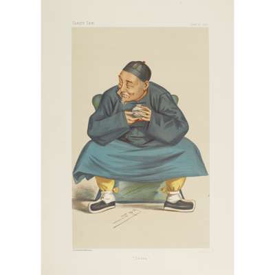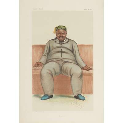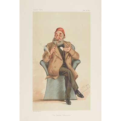 including 'China' [Excellency Kuo Sung Tao], 'the Heathen Chinee' [Francis Bret Harte], 'the music of the future' [Richard Wagner], 'The Turkish Constitution' [His Highness Midnat Pasha], 'Cricket' [W.G. Grace], 'The People's William' [W.E. Gladstone], 'Restored' [Cetewayo, Zulu King], 'Sarah Bernhardt', mostly very clean, a few lightly soiled, and c. 20 uncoloured portraits of ladies from The Whitehall Review, and c. 20 coloured supplementary plates to The Queen, Lady's Newspaper and Court Chronicle; and a few others, sold not subject to return