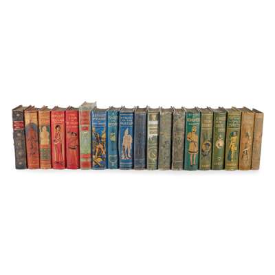 At Agincourt. London: Blackie & Son, [n.d.] 8vo, original green cloth gilt; By Right of Conquest. London: Blackie and Son, 1910. New Edition, 8vo, original cloth gilt; True to the Old Flag. London: Blackie & Son, [n.d.] 8vo, original cloth gilt; For Name and Fame: or, Through Afghan Passes. London: Blackie & Son, [n.d.]. 8vo, original cloth gilt, endpaper lacking; By Conduct and Courage. London: Blackie and Son Limited, 1905. 8vo, original cloth gilt; The Young Colonists... London: Blackie & Son, [n.d.] 8vo, original cloth; On the Irrawaddy. London: Blackie & Son, 1897. 8vo, original coth, worn, library stamp; Through Russian Snows. London: Blackie & Son, 1896. 8vo, original cloth; A March on London. London: Blackie & Son, 1898. London: Blackie & Son Limited, 1898. 8vo, original blue cloth gilt; A Knight of St John. London: Blackie and Son, 1912. New edition, 8vo, original cloth gilt; A knight of the White Cross. London: Blackie & Son, 1896. 8vo, original cloth gilt; By Pike and Dyke. London: Blackie & Son, 1890. 8vo, original cloth gilt; Wulf the Saxon. London: Blackie & Son, [n.d.] 8vo, original cloth; The Lion of St. Mark. London: Blackie and Son, [n.d.] New edition, 8vo, original cloth gilt; When London Burned. London: Blackie & Son, [n.d.] 8vo, original cloth; For the Temple. London: Blackie & Son, [n.d.] 8vo, calf gilt, worn; and an incomplete copy of In Freedom's Cause; Mrs Sherwood The Fairchild Family. London: Wells Gardner, [1931]. Fifth edition, 8vo, original cloth; Day, Thomas The History of Sandford and Merton. London: George Routeledge and Sons, [n.d.] 8vo, original cloth gilt (19)