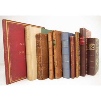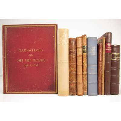 [Murray, George, Lord] A Particular Account of the Battle of Culloden, April 16, 1746. London: T. Warner, 1749. 8vo, half-title, bookplate of John George Home Drummond, 19th century half calf gilt, [ESTC T140768 ]; Penrice, Gerard A Genuine and Impartial Account of the Remarkable Life and Vicissitudes of Fortune of Charles Ratcliffe, who was Beheaded. London: for the author, 1747. 12mo, frontispiece, 19th century maroon half morocco gilt, [ESTC T63239]; Boyse, S. An Impartial History of the late Rebellion in 1745. Reading, 1748. 8vo, frontispiece portrait, 3 (of 5) plans, contemporary calf, rebacked, rubbed; Ray, James A Compleat History of the Rebellion. Printed for the Author, 1753, 12mo, fourth edition, modern quarter calf gilt; [Anon.] The History of the Rise, Progress and Extinction of the Rebellion in Scotland in the years 1745 and 1746. London, R. Thomson [&c., ?1760], 8vo, map & 4 plates, modern quarter calf, [ESTC T68821]; Cope, Sir John A Report of the Proceedings and Opinion of the Board of General Officers on their examination into the Conduct, Behaviour and Proceedings of Lieutenant-General Sir John Cope. Dublin, 1749. 8vo, contemporary calf, inner margin of title repaired, some spotting, rubbed; Stewart, James The Trial of James Stewart in Aucharn in Duror of Appin. Edinburgh: G. Hamilton & J. Balfour, 1753, 8vo, contemporary calf, slightly rubbed; Lovat, Simon, Lord Memoirs of the Life. London, 1797. 8vo, blue half morocco, small tear to title repaired; another edition, edited by Hugh K. Fraser. 1902, 4to, buckram-backed cloth, t.e.g.; Macleod, John, Lord Narrative of the Insurrection in Scotland on behalf of the Royal Family of Stuart in the years 1745-6. 1846, Privately Printed, 4to, plates, original red cloth gilt, lower board of binding stained (10)