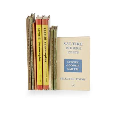 Skail Wind. 1941, first edition and second edition, presentation copies, the second edition to James Harris, the first edition to Anna Macleod, boards slightly soiled; The Wanderer and other Poems. 1943, presentation copy to Anna, original wrappers; Selected Poems. 1947, signed copy, original wrappers; The Vision of the Prodigal Son. 1960, presentation copy to Anna from the author, original orange wrappers; Carotid Cornucopius. 1947, presentation copy to 'the Anna', original boards, worn; Carotid Cornucopius. 1964, 2 copies, both signed, one with long poetic inscription on front endpaper, one with frayed dustwrapper; The Apple and the Hazel. 1951, signed copy, original wrappers; Fifteen Poems and a Play. 1969, signed by author and Robin Orr, original boards (10)