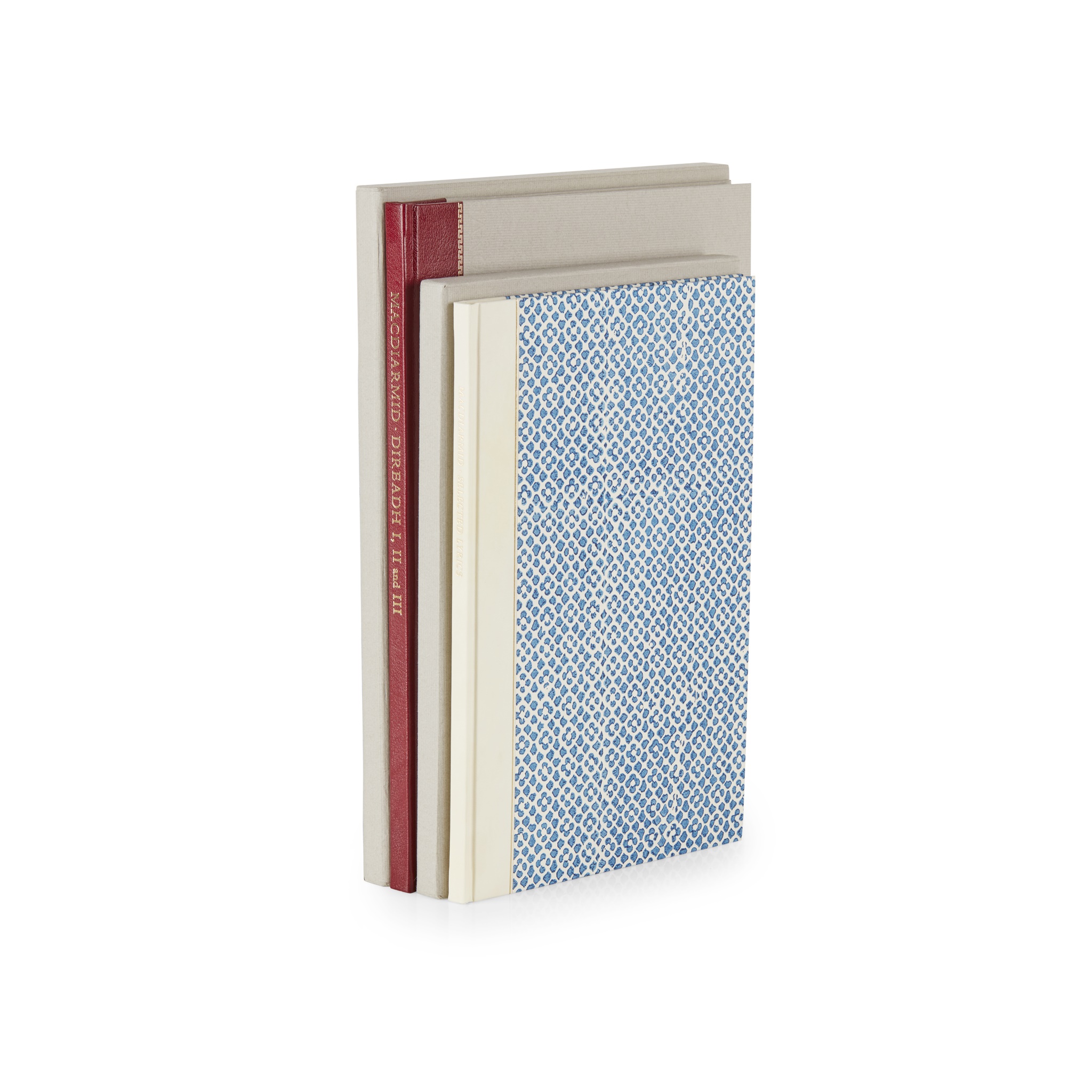 Duval & Hamilton, 1977, number 7 of 135 copies, frontispiece, original vellum-backed blue patterned boards, t.e.g., others uncut, slipcase; Macdiarmid, Hugh. Direadh I, II and III. Frenich: K. Duval & C.H. Hamilton, 1974. First edition, number 67 of 200 copies signed by the artist, original red pigskin-backed grey boards, uncut, slipcase (2)
