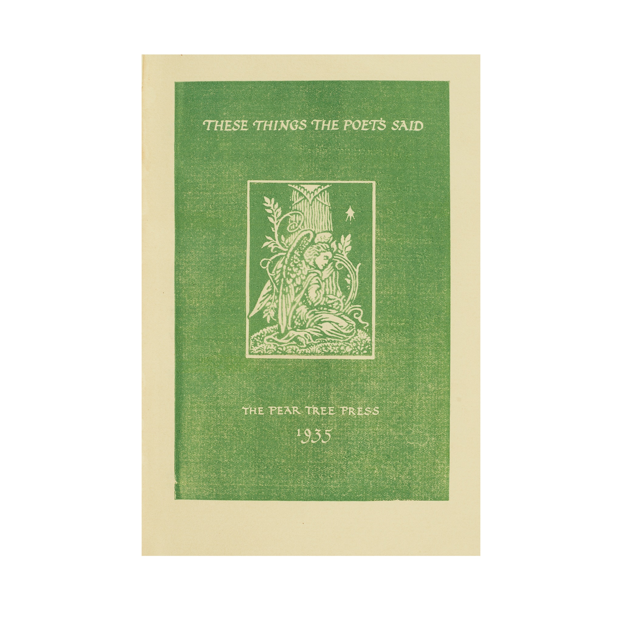 The Pear Tree Press, 1935. First edition, number 73 of 150 copies, 8vo, title printed in red, woodcut designs printed in green or maroon, original cloth-backed board, signed in ink on endpaper by John Gold, with his pencil inscription 'my very good & beautiful friend Edward Thomas, a lovely man & poor...' [rest of inscription a little faint], also signed by John Gold's niece, Joanna Forsyth
