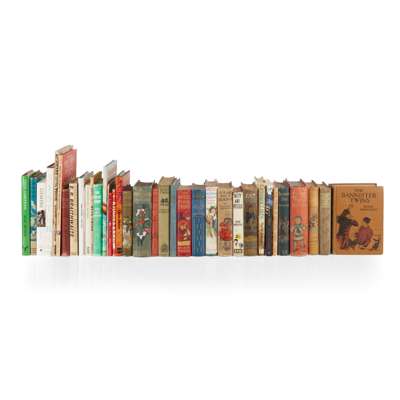 168 books, including: Milner, Elizabeth The Twins... London: Society for Promoting Christian Knowledge, 1856. 12mo, original purple cloth gilt; Timlow, Elizabeth Westyn The April-Fool Twins. London: W. & R. Chambers, 1909. 8vo, original cloth; Campbell, Ellen Twin Pickles. London: Blackie and Son Limited, [n.d.] 8vo, original cloth; Everett-Green, E. Battledown Boys... London: The Sunday School Union, [n.d.] 8vo, original cloth; Jameson, E.M. The Pendleton Twins. London: Henry Frowde, 1908. 8vo, original pictorial red cloth gilt; Pearce, St. John How Tom Made Good. London: Ward, Lock & Co., Limited, [n.d.] 8vo, original green cloth; Marchant, Bessie The Bannister Twins. London: T. Nelson & Sons Ltd., [n.d.] 8vo, original brown cloth; Le Feuve, Amy A Puzzling Pair. London: The R.T.S. Office, [n.d.] 8vo, original cloth; Gellie, Mary E. The Venturesome Twins. London: Griffith, Farran, Okeden & Welsh, 1886. 8vo, original yellow cloth gilt; The Bobbsey Twins Annual. Manchester: Grosset and Dunlap, 1957. Large 8vo, dust-jacket present but with some tears; Phillips, Louise Sarah and Sue. London: Art & Educational Publishers, 1948. 4to, original green cloth; Manwell, M.B The Crew of the Rectory. London: S.W. Partridge & Co. Ltd, [n.d.]. 8vo, original cloth gilt; Wells, Helen The Search for the Missing Twin. New York: Grossett and Dunlap, 1954. 8vo, original blue cloth ; Le Feuvre, Amy A Puzzling Pair. London: the RTS office, [n.d.]. 8vo, original cloth; Tranter, Nigel The Deer Poachers. London: Blackie, 1961. 8vo, original cloth, dust-jacket price-clipped; Taylor, Domini Gemini. London: Hamish Hamilton, 1984. 8vo, original cloth, dust jacket price clipped; Stevenson, Mabel M. Fairy Tales. London: Dean and Sun Limited, [n.d.] Original boards; Earnshaw, Harold Poly and Peter. London, [n.d.] Original boards; Haslip, Joan Fairy Tales from the Balkans. London: W.M. Collins and Co. Limited, 1945. 8vo, dust-jacket price-clipped; Wotton, Mabel E. The Little Browns. London: Blackie and Sun Limited, 1900. Illustrated by H.M. Brock, original red cloth; and a large collection of others, sold not subject to return