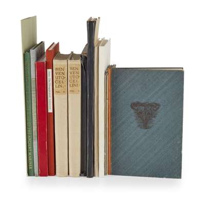 Pinter, Harold. The Disappeared. Enitharmon Editions, 2002. 4to, Number 175 of 195 copies, signed by Harold Pinter and Tony Bevan, original cloth; Noel, Roden. The Waternymph and the Boy. Linocuts by J. Martin Pitts, 1997. 4to, number 101 of 225 copies signed by the artist, original pictorial cloth binding, ties; The Four Elements. The Friends of the Cheltenham Festival of Literature. number 93 of 125 copies, signed by Lawrence Sail, Laurie Lee, Seamus Heaney and Jenny Joseph, loose in green wrapper as published; Rhythm. Art Quarterly. vol. 1 no. 2 and vol. 2 no. 5, pictorial wrappers; Villefosse, H. de. A Tribute to Precious Stones. With an original lithograph by André Derain. 1947. 4to, original wrappers, spine slightly split, slipcase; Jones, David. An Introduction to the Rime of the Ancient Mariner. London: Clover Hill Editions. 1972. 4to, number 131 of 215 copies, original green cloth; Burns, Robert. The House that Jack Built. 1937. Folio, inscribed to Daisy Gunn, wife of Neil Gunn, original cloth-backed boards, lightly faded; Grammaticus, Saxo. The History of Amleth Prince of Denmark. Limited Editions Club, 1954, 4to, limited to 1500 copies, signed by the illustrator, Sigurd Vasegaard, original quarter calf; Humphreys, Emyr. Pwyll a Rianon. 1980. 4to, 2 copies, each limited to 100 copies, signed, plates, original wrappers, uncut; Symonds, J.A. The Life of Benvenuto Cellini. 1900, 2 volumes, 300 copies printed, original quarter cloth, uncut; Dreiser, Theodore. Epitaph. New York, [n.d.], number 952 of 1100 copies, 4to, decorations by Robert Fawcett, original black cloth, slipcase worn and repaired (14)