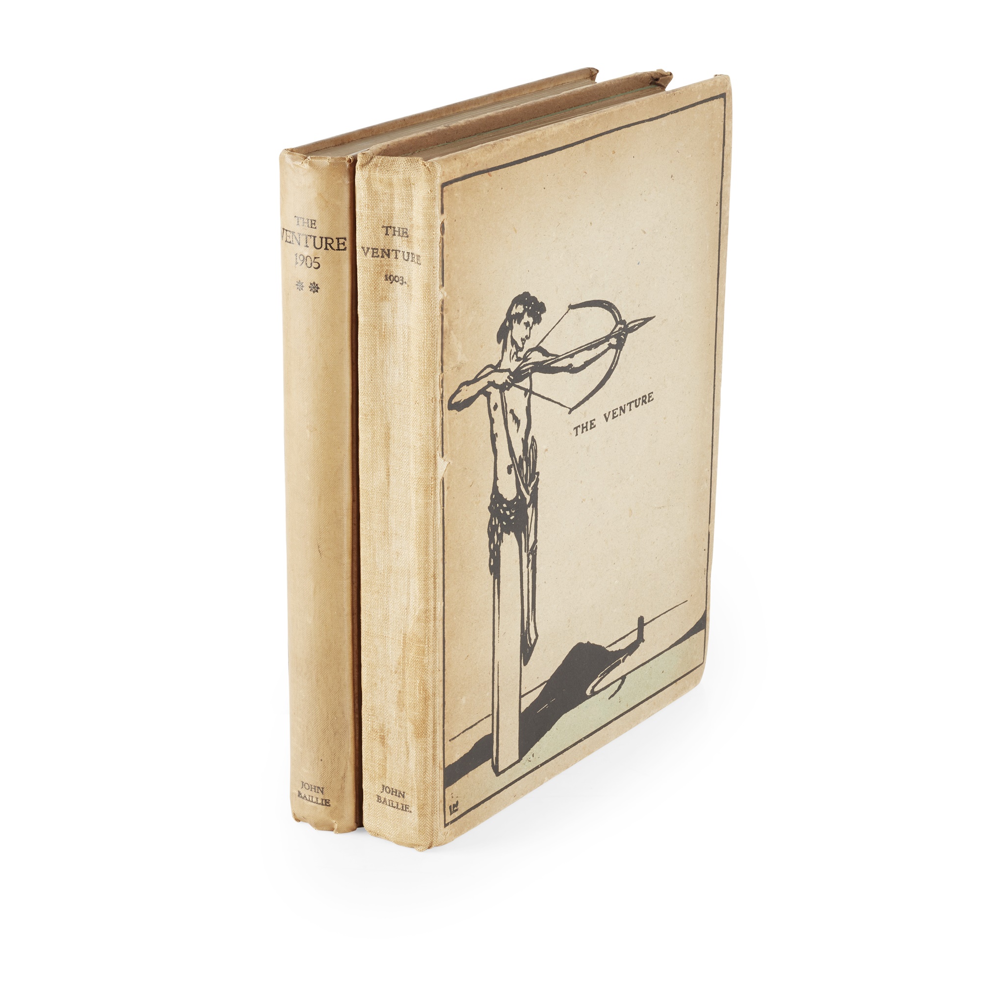 London: John Baillie's, 1903-05. 2 volumes, 4to, woodcuts by Charles Shannon, Charles Ricketts, Lucien Pisarro & others, inscribed in pencil 'J. |Gold Kendal, 1925, to Joanna Scott Forsyth', first volume original linen-backed pictorial boards, uncut, volume 2 original pictorial cloth, uncut, both volumes very occasionally lightly spotted, bindings lightly discoloured
