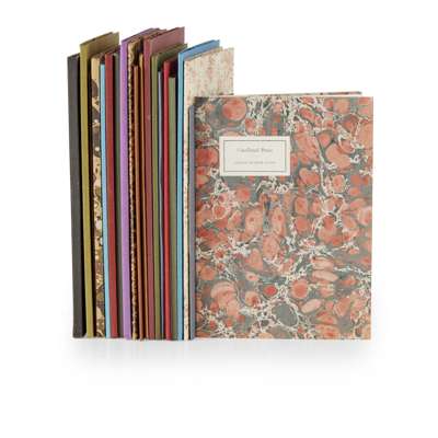 Finlay, Ann. Seed Time and Harvest. 1978, limited to 110 copies, cloth-backed boards; Sitwell, Sacheverell. Agamemnon's Tomb. 1972, number 9 of 265 copies signed by Sitwell, marbled wrappers; Symons, A.J.A. A.J.A. Symons to Wyndham Lewis. 1982, number 30 of 120 copies, marbled wrappers; Weeks, Donald. Frederick William Rolfe, the 1903 Conclave & Hartwell de la Garde Grissell. 1982, number 25 of 110 copies, blue wrappers; Weeks, Donald. Frederick Rolfe and Henry Harland. 1978, number 81 of 125 copies, brown wrappers; Summers, Montague. Letters to an Editor. 1986, number 37 of 145 copies, maroon wrappers; Different Aspects. Frederick William Rolfe... 1976, number 65 of 125 copies, green wrappers; Fuller, Roy. The Joke Shop Annex. 1975, one of 115 copies, original brown wrappers; Fuller, Roy. Mianserin Sonnets. 1984, number 44 of 145 copies, green wrappers; Fuller, Roy. More about Tompkins. 1981, number 75 of 135 copies, red wrappers; Fuller, Roy. House and Shop. 1982, number 65 of 110 copies, pale brown wrappers; O'Sullivan, Vincent. Thomas de Quincey. 2010, number 18 of 45 copies, maroon wrappers; Home, John. A Sketch of the character of Mr Hume and Diary. 1976, one of 250 copies, presented by the printer, blue wrappers; Bowes Lyon, Lilian. Uncollected Poems. 1981, number 13 of 95 copies, marbled wrappers; O'Sullivan, Vincent. Tancrede Martel. 1973, number 34 of 55 copies, blue wrappers; Borrow, George. Letters to John Hasfeld. 1982, number 44 of 140 copies, brown wrappers; Mallalieu, H.B. On the Berlin Lakes. 1988, number 51 of 125 copies, green wrappers; Johnson, Lionel. Selected Letters, 1988, number 86 of 150 copies, green wrappers; O'Connor, Frank. For a Two-Hundreth Birthday. 1986, number 68 of 120 copies, patterned wrappers; Symons, Arthur. An Anonymous Review of W.B. Yeats's Ideas of Good and Evil. 1988, number 74 of 120 copies, blue wrappers (20)