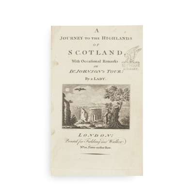 With occasional remarks on Dr. Johnson’s tour: by a lady. London: Fielding and Walker, [n.d. but possibly 1776] 8vo, engraved title-page, contemporary tree calf, old stamp of the Netherby Library to title [ESTC T80850]