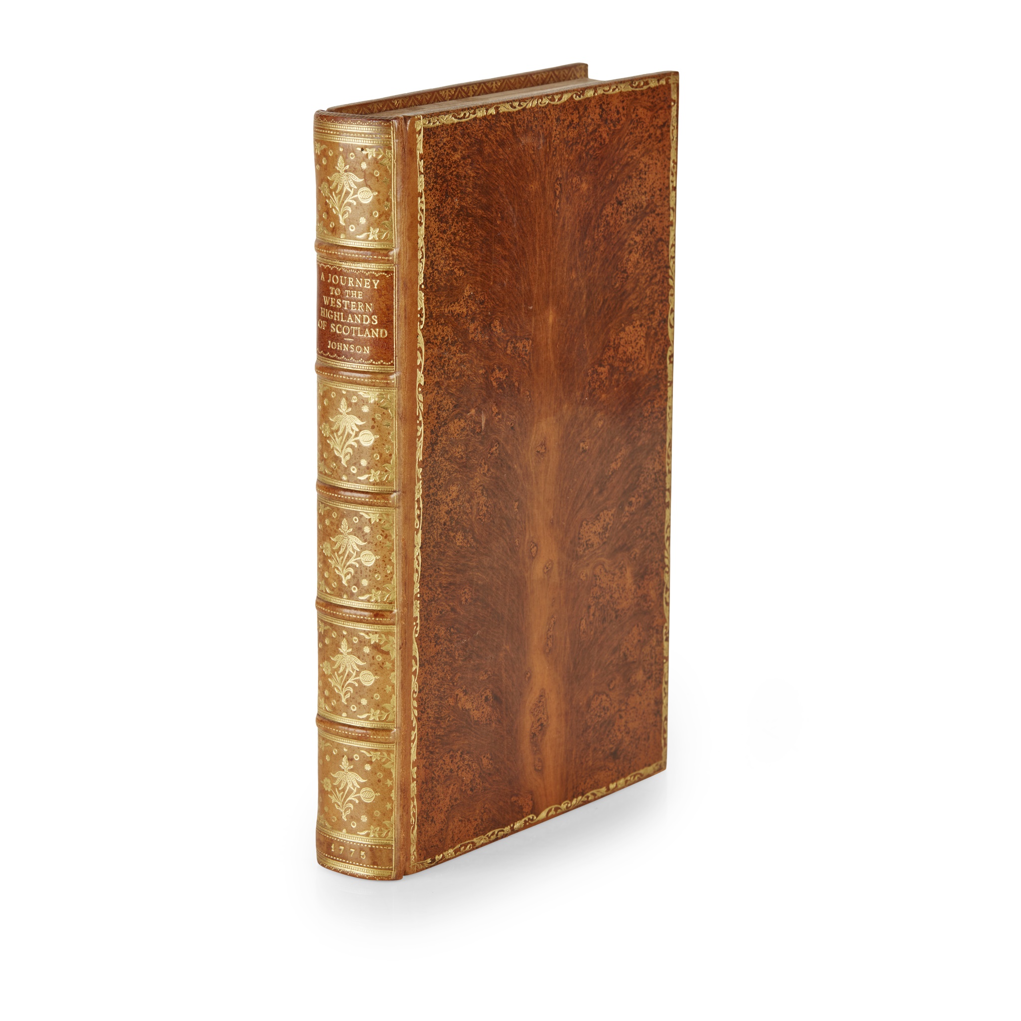 London: W. Strahan, 1775. First edition, 8vo, finely bound in tree calf gilt by Riviere [ESTC T84319]; with a loosely inserted etching from The Gentleman's Magazine (volume 45, 1775) entitled Dr Saml Johnson's Introduction to a Highland Hut, 11.5 x 15.5cm