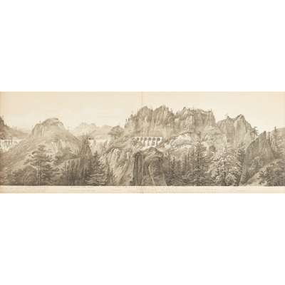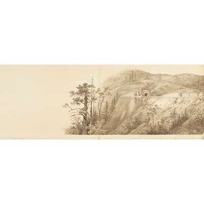 Vienna: Carl Gerold & Sohn, 1854. Oblong folio, 2 plans, 5 tinted lithographed plates and 18 sheet panorama, panorama detached in 2 places and with a few short tears in lower margin, slightly spotted, contemporary green embossed morocco, slightly rubbed, plate list supplied in early manuscript