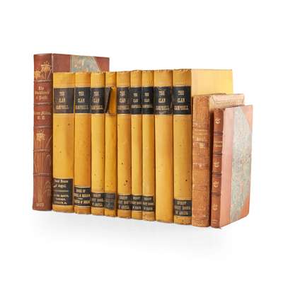 Milne, Robert The Blackfriars of Perth. Edinburgh: David Douglas, 1893. 4to, contemporary half morocco gilt; [Perth] Miscellanea Perthensis, 1801. Perth: Will Morison, 1801. 12mo, frontispiece, later half calf, some internal toning; [Perth] Memorabilia of the City of Perth. Perth: William Morison, 1806. 8vo, folding map, 2 plates, contemporary embossed straight-grained morocco, some spotting and browning; Paton, Henry, editor - Duncan Campbell The Clan Campbell Abstracts. Edinburgh: Otto Schulze & Company, 1913; and another copy; [Idem] The Clan Campbell Abstracts, Second Series, 1915; and 6 further volumes from the same series, in uniform yellow cloth (12)