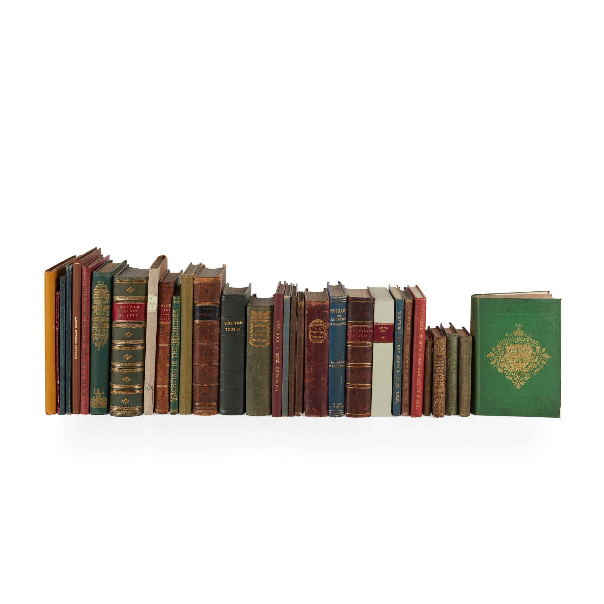 [Homer, Philip Bracebridge] Observations on a Short Tour made in the Summer of 1803 to the Western Highlands of Scotland... London: Sael and Co., 1804. 12mo, original boards, in clamshell box; The Traveller's Guide through Scotland. Edinburgh: J. Thomson Jun. & Co., 1808. Fourth edition, 8vo, contemporary calf; Keddie, William Highland Tour, Glasgow to Oban. Glasgow: Maclure and Macdonald, [n.d,] 8vo, 19th century green half calf gilt; and two further copies in half calf and original green cloth gilt; The Scottish Tourist... A Guide to the Scenery and Antiquities of Scotland and the Western Islands. Edinburgh: Stirling, Kenney, & Co., 1838. Seventh edition, 8vo, original red straight-grained morocco gilt; The Scottish Tourist... A Guide to the Scenery and Antiquities of Scotland and the Western Islands. Edinburgh: Stirling, Kenney, & Co., 1831. Fourth edition, 8vo, later green quarter calf gilt; [Spencer] Journal of a Tour to Scotland. Oxford: Munday and Slatter, 1816. 8vo, original boards with later paper spine; McNayr, James A Guide from Glasgow. Glasgow: the Courier Office, 1797. 8vo, contemporary tree calf gilt; Anderson, George and Peter Guide to the Highlands and Islands of Scotland. London: John Murray, 1834. 8vo, original green cloth gilt; Balfour, J.H. Account of a Botanical Excursion to the Mull of Cantyre and the Island of Islay. Glasgow: Bell & Bain, 1845. 8vo, upper cover inscribed by Balfour to Dr Blackie, original wrappers, slipcase; MacLean, Lachlan An Account of the Surname of Maclean, or Macghillean... Xenia: The Aldine Publishing House, 1914. 8vo, original green cloth gilt; 'W.P. and A.I.' A Botanical Tour of the Highlands of Perthshire. London: William Pamplin, 1857. 8vo, original green cloth gilt; Menmuir, Henry A Walking Tour in the Scottish Highlands. Edinburgh, 1912. 8vo, original green cloth gilt; Thomson, Robert A Cruise in the Western Hebrides... Glasgow: A. Cochrane, 1891. 8vo, inscribed by the author, original brown cloth gilt; and 16 others (31)