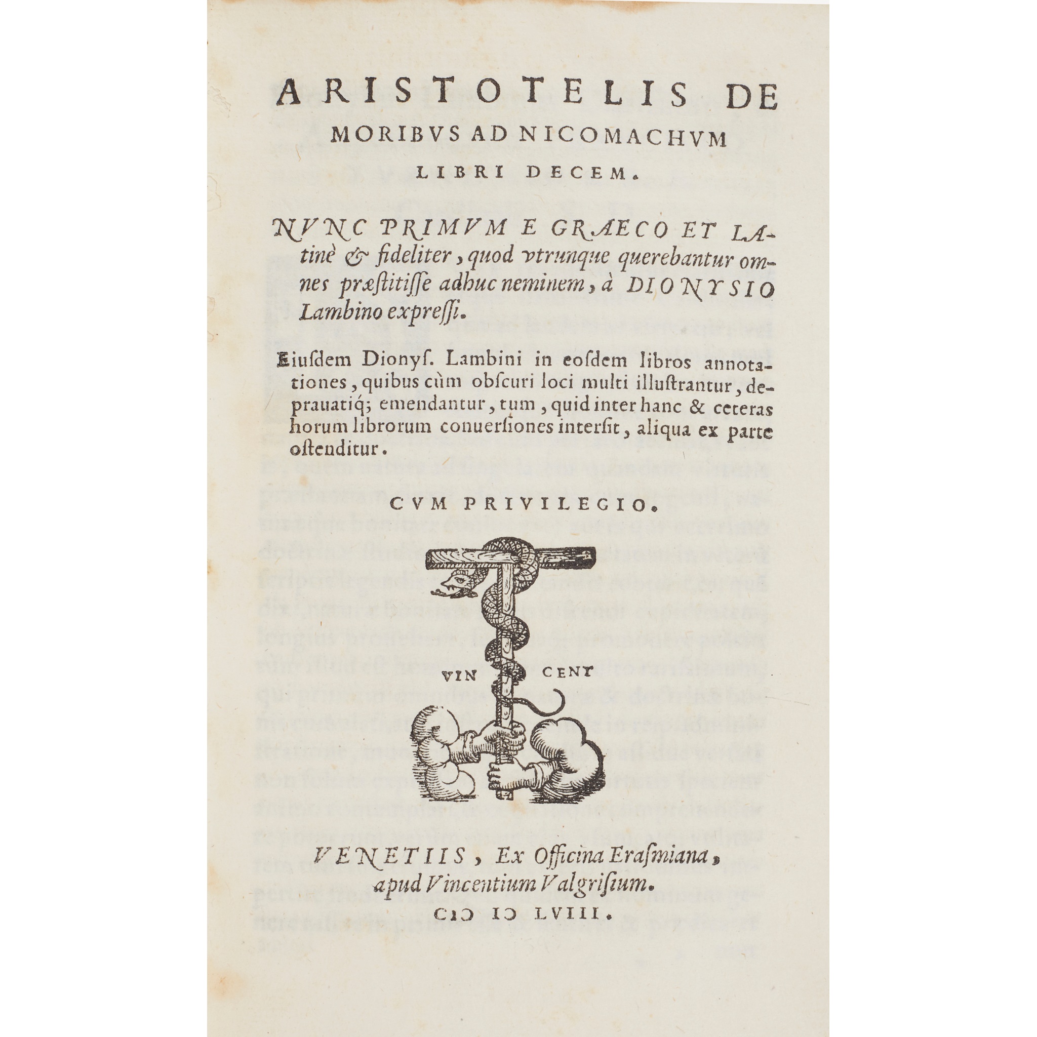 Venice: Vincenzo Valgrisi, 1558. 8vo, contemporary vellum, some slight darkening around page edges, manuscript notes in an early hand, [USTC 810947]; Smith, Adam An Inquiry into the Nature and Causes of the Wealth of Nations. Edinburgh: Stirling and Slade..., 1819. 3 volumes, 8vo, modern half morocco gilt, endpapers renewed (4)
