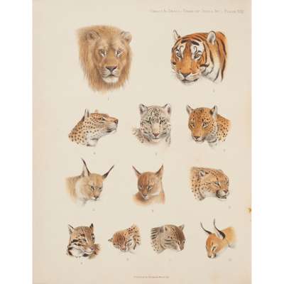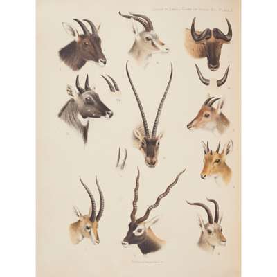 London: Rowland Ward, 1900. Number 108 of 250, signed by the publisher. 4to, 9 hand-coloured lithograph plates with facing tissue and black and white photographs and illustrations throughout text, original green cloth gilt with black endpapers, some darkening and dust-soiling to half title, bookplate and blind-stamp of Library of The American Museum of Natural History, AMNH cancellation stamp, early ownership annotations in ink and pencil, spine and edges bumped, tears to spine and corners, endpapers dampstained and detached from internal joints