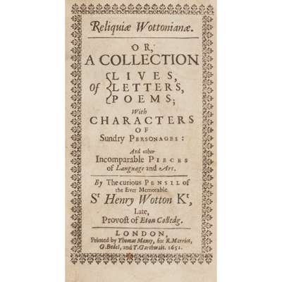 London: R. Marriot, 1651. First edition, 12mo, 4 portraits, contemporary calf neatly rebacked with later spine, final leaf slightly frayed [ESTC R209190]
