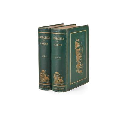 London: Macmillan and Co., 1874. 2 volumes, first edition, 8vo, 2 portrait frontispieces, hand-coloured folding map, single-page map and 51 plates, original green cloth gilt, a little rubbing to joints and bumping to spine ends and corners, folding map neatly repaired to reverse, a few light internal marks (2)