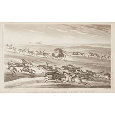 London: Henry Colburn, 1828. First edition, 8vo, presentation copy with pencil inscription on front free endpaper "To John Horne Esq. with the authors kind regards", 4 black and white aquatint plates, bookplate 'Steve Fossett Collection of Adventure & Exploration', contemporary half calf over marbled boards, some dust-soiling and occasional spotting, small areas of dampstaining, areas of loss and rubbing to spine and corners, rubbing along edges, wear to marbled paper
