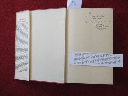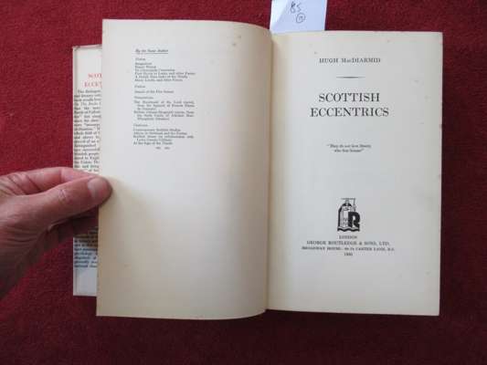 Northern Numbers. Edinburgh: T.N. Foulis, [1920]. First edition, 8vo, original quarter cloth, with several poems by MacDiarmid; Annals of the Five Senses. Montrose: C.M. Grieve, 1923. First edition, 8vo, signed and inscribed 'C.M. Grieve' to H.J.C. Grierson, original cloth; Sangschaw. Edinburgh: William Blackwood and Sons, 1925. First edition, 8vo, original blue cloth gilt, dust-jacket; Penny Wheep. Edinburgh: William Blackwood & Sons Ltd., 1926. First edition, 8vo, original blue cloth gilt, dust-jacket a little worn; To Circumjack Cencrastus... Edinburgh: William Blackwood & Sons Ltd., 1930. First edition, 8vo, inscribed and signed from the author to Harold Edwards, original cloth, some wear to dust-jacket; Stony Limits. London: Victor Gollancz, 1934. First edition, 8vo, inscribed "To S.G. Whitehorn from C.M. Grieve ("Hugh MacDiarmid"), London, June. 1934", original cloth, dust-jacket; Scottish Eccentrics. London: George Routledge & Sons Ltd., 1936. 8vo, inscribed by the author: "To Mr and Mrs F.G. Scott with love from Mr and Mrs "Hugh MacDiarmid", original red cloth gilt, dust-jacket; Scotland; and the Question of a Popular Front against Fascism and War. Dunfermline: The Hugh MacDiarmid Book Club, [n.d.] 4pp. pamphlet, signed Hugh MacDiarmid and Christopher Murray Grieve along the top; A Drunk Man Looks at the Thistle. Edinburgh: Castle Wynd, 1956. Third edition, 8vo, signed and inscribed by MacDiarmid, original cloth, dust-jacket not price-clipped; The Fire of the Spirit. Glasgow: Duncan Glen, 1965. 8vo, signed by MacDiarmid, original wrappers; Three Hymns to Lenin. Edinburgh: Castle Wynd Printers Limited [n.d.] 8vo, signed and inscribed by Hugh MacDiarmid, original red cloth gilt, dust-jacket; Print depicting Loveday's 1968 illustration of Hugh MacDiarmid and the poem 'Separatism', one of 150 copies signed by Hugh MacDiarmid; A Political Speech. Edinburgh: Reprographia, 1972. 8vo, number 9 of 50 signed copies; Direadh I, II, and III. Frenich: Kulgin Duval and Colin H. Hamilton, 1974. 4to, number 22 of 200 signed copies, original red quarter morocco gilt, slipcase; Cornish Heroic Song for Valda Trevlyn and Once in a Cornish Garden. Padstow: Lodenek Press, 1977. 8vo, signed Hugh MacDiarmid and Valda Trevlyn, original boards; Weston, John C. Hugh MacDiarmid's A Drunk Man Looks at the Thistle. Preston: Akros, 1970. 8vo, original blue wrappers, with loosely inserted ALS from MacDiarmid addressed to Alistair Stevens, dated 20-07-70; Glen, Duncan A Small Press and Hugh MacDiarmid. Preston: Akros, 1970. 4to, one of 300 copies, original wrappers (17)