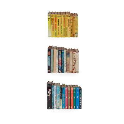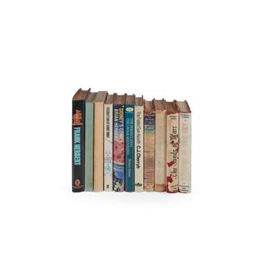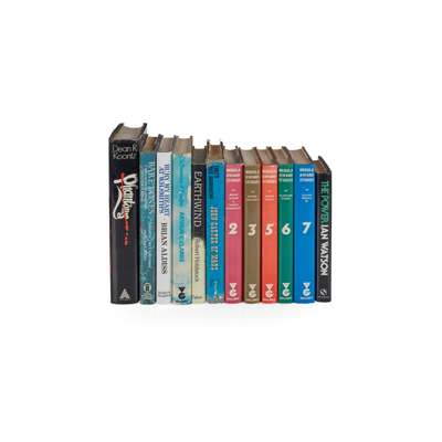 Clarke, Arthur C. Islands in the Sky. London: Sidgwick and Jackson Limited, [n.d.]; [Idem] The Sands of Mars. London: Sidgwick and Jackson Limited, 1951; [Idem] Prelude to Space. London: Sidgwick and Jackson Limited, 1953; [Idem] The Other Side of the Sky. London: Victor Gollancz Ltd, 1961; [Idem] The Fountains of Paradise. London: Victor Gollancz Ltd, 1979; Burroughs, Edgar Rice John Cater of Mars. New York: Canaveral Press, 1964; Koontz, Dean R. Phantoms. London: W.H. Allen, 1983; [Idem] Watchers. London: Headline, 1987. Uncorrected proof, original wrappers; [Idem] Lightning. London: Headline, 1988. Uncorrected proof, original wrappers; Bleiler, Everett F. & T.E. Dikty Category Phoenix. London: The Bodley Head, 1955; Aldiss, Brian Bury my Heart at W.H. Smith's. London: Hodder & Stoughton, 1990; King, Stephen Bare Bones. London: New English Library, 1989; Watson, Ian The Power. London: Headline Book Publishing, 1987; [Idem] Chekhov's Journey. London: Victor Gollancz Ltd., 1983; [Idem] The Fire Worm. London: Victor Gollancz Ltd, 1988; Holdstock, Robert Earthwind. London: Faber and Faber, 1977; Nebula Stories Award London: Victor Gollancz, 1967-1972, comprising numbers 2, 3, 5, 6 & 7; Daventry, Leonard A Man of Double Deed. London: Victor Gollancz Ltd., 1965. Ownership signature to endpaper; Cowper, Richard The Road to Gourlay. London: Victor Gollancz Ltd., 1978; [Idem] A Dream of Kinship. London: Victor Gollancz Ltd., 1981; Silverberg, Robert Capricorn Games. London: Victor Gollancz Ltd., 1978; [Idem] Downward to the Earth. London: Victor Gollancz Ltd., 1977; Del Rey, Lester Pstalemate. London: Victor Gollancz Ltd., 1972; Coney, Michael Brontomek! London: Victor Gollancz Ltd., 1976; Turner, George Yesterday's Men. London: Faber and Faber, 1983; Herbert, Brian Sidney's Comet. London: W.H. Allen, 1984; [Idem] Soul Catcher. London: New English Library, 1972; Adams, Robert The Horseclans 5: The Savage Mountains. London: MacDonald, 1979; Sprague de Camp, L. & Fletcher Pratt The Castle of Iron. New York: Gnome Press, 1950; Cherryh, C.J. The Faded Sun: Kesrith. Newton Abbot: Readers Union, 1978; all 8vo, original cloth, dust-jackets not price-clipped; sold not subject to return 34)