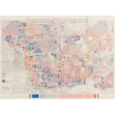 1) Descriptive Map of East End Poverty, compiled from School Board Visitors' Reports in 1887 (dissected and laid on linen, 37 x 50.5cm, loose);
