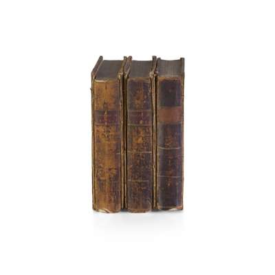 Philadelphia: Thomas Dobson, 1789. First American edition, 3 volumes, 12mo, [viii], 9-412; [vi], 7-430; [vi], 7-387, [53]; early ownership inscription 'Joseph Hall's 1793' at head of titles, volume 3 Contents leaf, volume 2 title-page and volume 1 Advertisement to the Third Edition leaf also with the early inscription 'N.Hamilton', contemporary sheep, repair to inner margin of volume 2 title-page, cloth repair to inner margin of final 2 pages of volume 2, not affecting text, 4 boards and volume 2 title detached, some spotting, lacking one of the morocco lettering pieces, bindings worn (3)